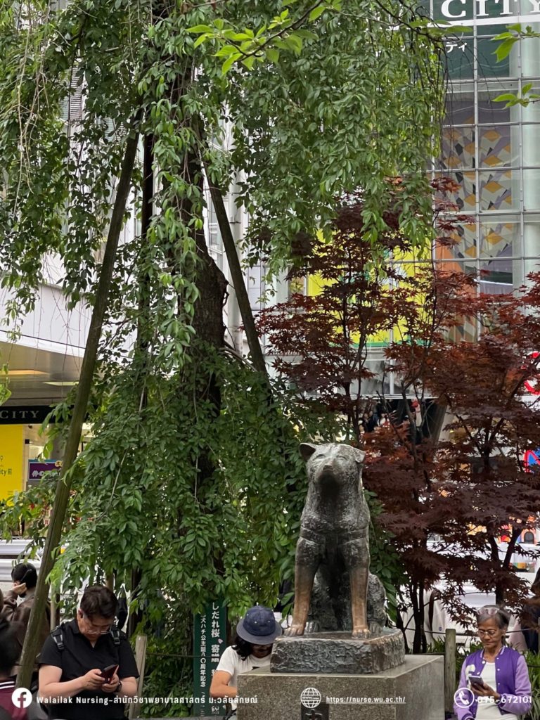จากนั้นก่อนกลับที่พัก เราได้มาแวะที่รูปปั้นฮาจิโกะ ซึ่งเป็นรูปปั้นสุนัขที่โด่งดัง ซึ่งฮาจิโกะนั้นเป็นสุนัขที่ได้มาส่งและรอรับเจ้านายของมันทุกวัน จนวันที่เจ้านายได้เสียชีวิตจากไปแล้ว ฮาจิโกะก็ยังคงมารอ จึงได้สร้างรูปปั้นของฮาจิโกะขึ้นเป็นสัญลักษณ์แห่งความซื่อสัตย์ จนได้มีการทำภาพยนตร์
