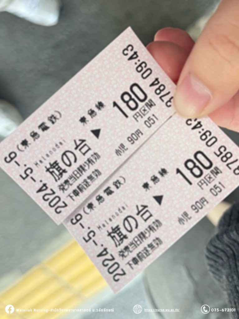Day 4 (9 May 2024) Don’t just sit and dig into your books Look at the big wide world and see what it has to offer อย่ามัวหาความรู้แค่ในตำรา ให้ลองเงยหน้าขึ้นมามองโลกกว้างบ้าง เหมือนดั่งเช่นวันนี้ที่พวกเรานักศึกษาพยาบาลศาสตร์ มหาวิทยาลัยวลัยลักษณ์ได้มีโอกาสมาค้นหาความรู้ไม่ใช่แค่ในหนังสือหรือในชั้นเรียนเพียงเท่านั้น แต่พวกเราได้รับโอกาสให้มาหาความรู้ แลกเปลี่ยนความรู้และวัฒนธรรมไกลถึงประเทศญี่ปุ่นและนั่นก็คือ Home Visiting in Japan!