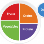 ประกอบไปด้วย ผัก 40 % ซึ่งเป็นอะไรก็ได้ยกเว้นมันฝรั่ง สัก 5-6 ชนิดรวมกัน รวมถึงวิธีปรุงให้ใช้การ ย่าง นึ่ง ต้ม หากผัดหรือทอด ใน 3 มื้อ ให้เลือก 1 อย่าง เพื่อให้ไขมันไม่เกิน 6 ช้อนชาต่อวัน 10 % เป็นผลไม้ โดยต้องกำหนดยูนิต กินเพียงครั้งละ 2-3 เสริฟ ( 1 เสิร์ฟประมาณ1 จานรองถ้วยกาแฟ หรือ ส้ม 1 ผล กล้วย 1 ผล ฝรั่งครึ่งลูก) งดการกินผลไม้เพื่อลดความอ้วนนะ อีก 25% แรกเป็นแป้ง เน้นที่มีไฟเบอร์ ให้ลองสังเกตุของแห้งที่มีไฟเบอร์สูงจะมีลักษณะหยาบ จะช่วยให้ดูดซึมช้าลง และ 25% ที่เหลือก็คือโปรตีน แปรรูปให้น้อยที่สุด ทั้งนี้อาหารในแต่ละมื้อให้ดูผลรวมของแคลรอรี่ต่อวัน โดยกินตามเวลาอาหารปกติ แบ่งเป็น 3-4 มื้อ ไม่กินอาหารใกล้เข้านอนเกินไป และพึงระลึกไว้เสมอว่า อาหารไม่ใช่ผู้ร้าย