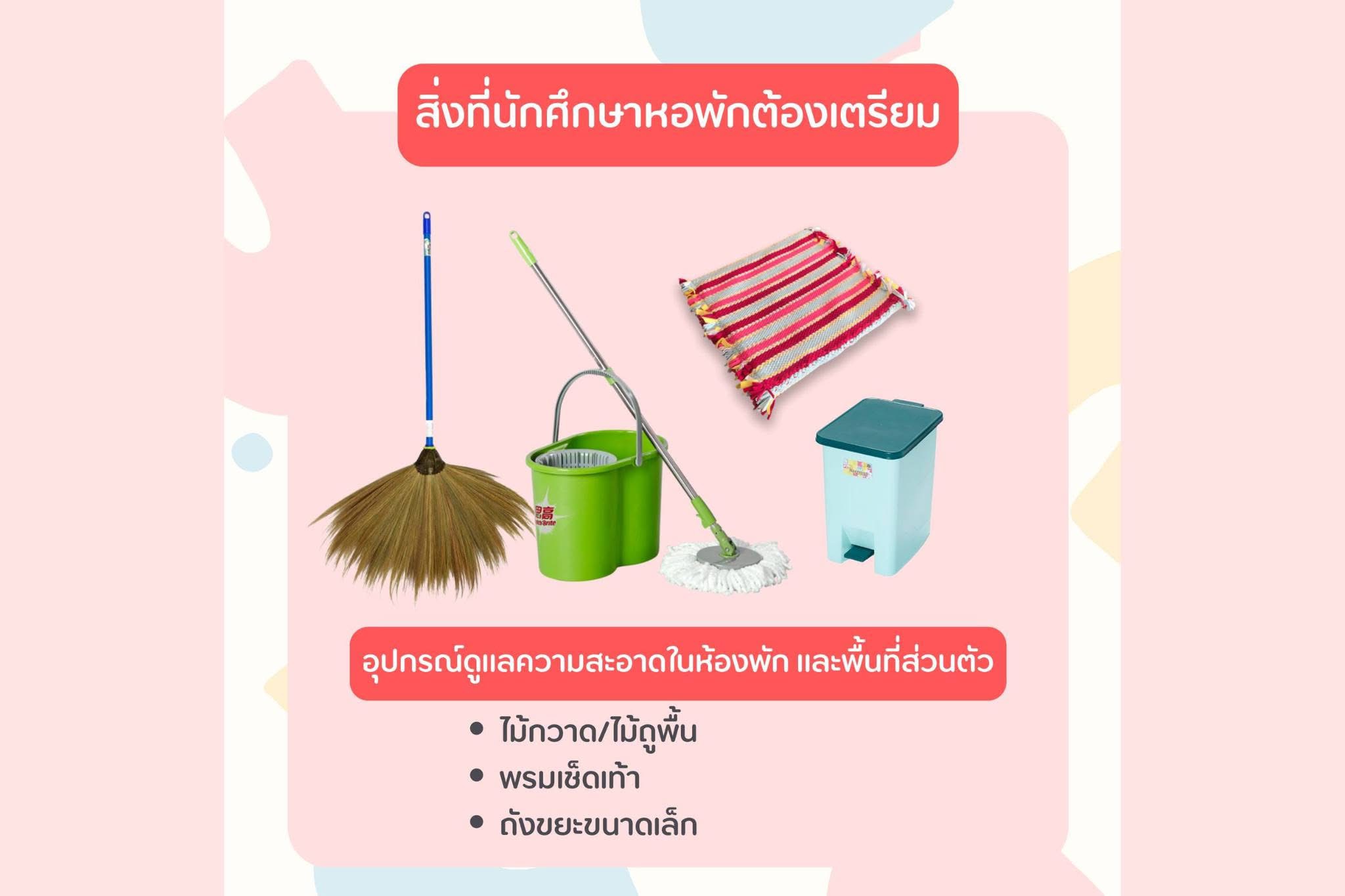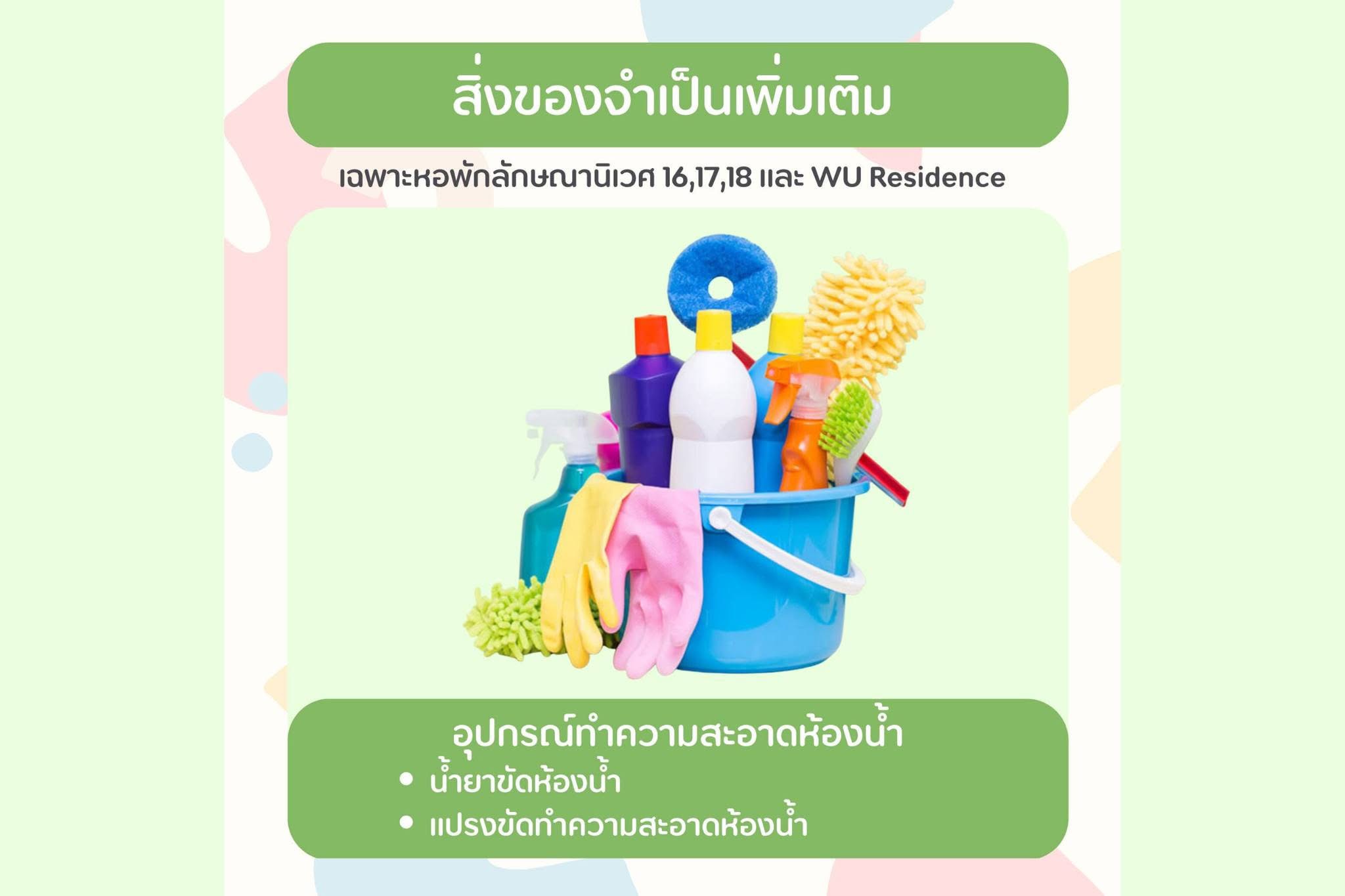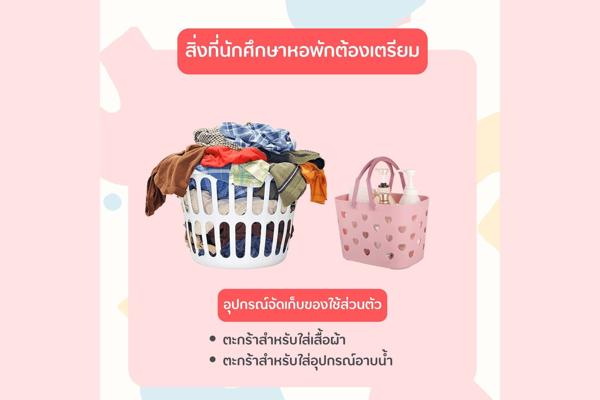 • อุปกรณ์ซักผ้า เช่น ผงซักฟอก ไม้แขวนเสื้อ ตะกร้าผ้า