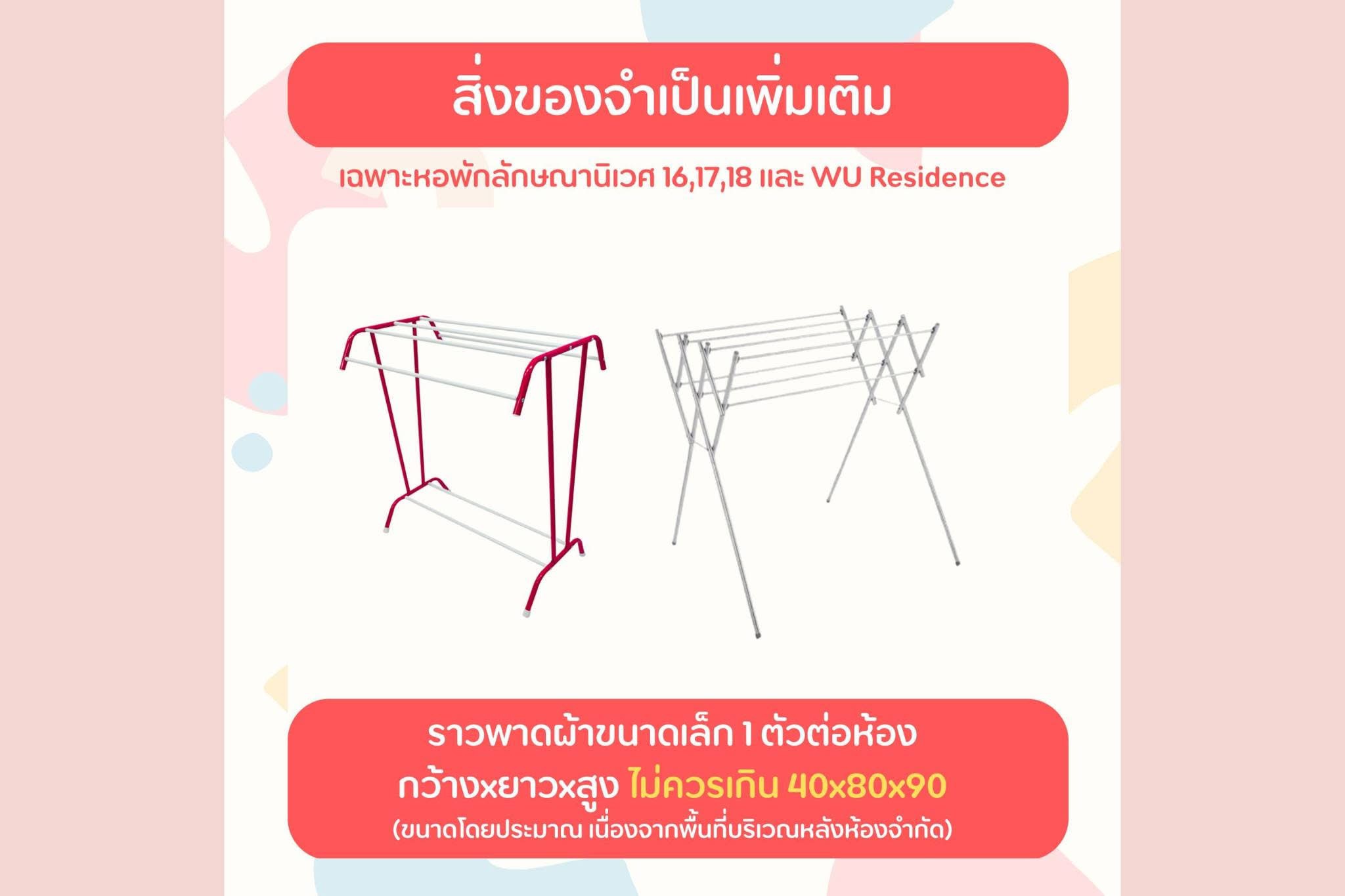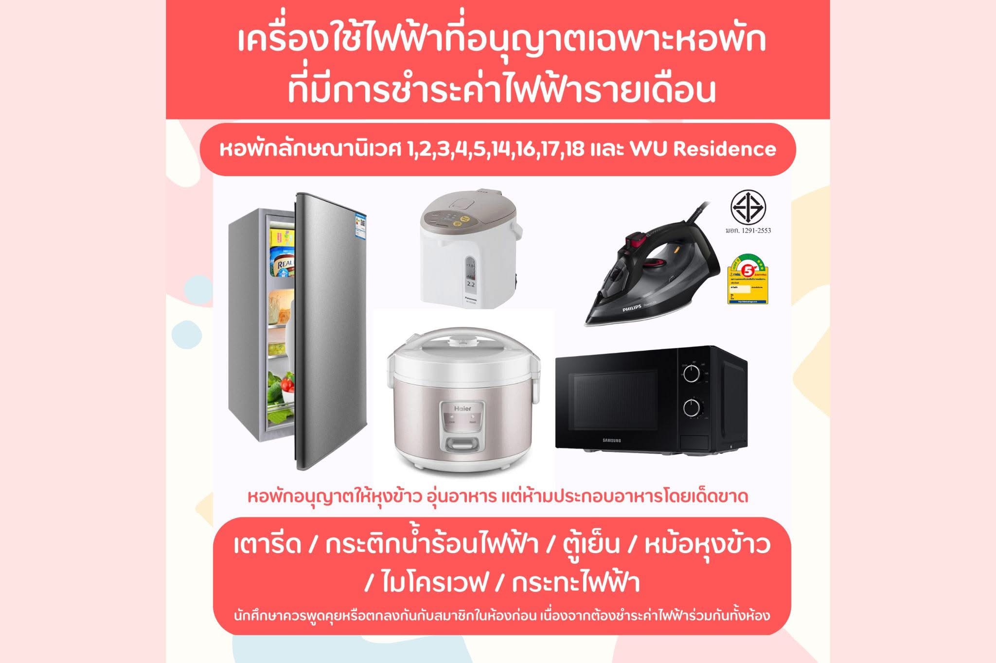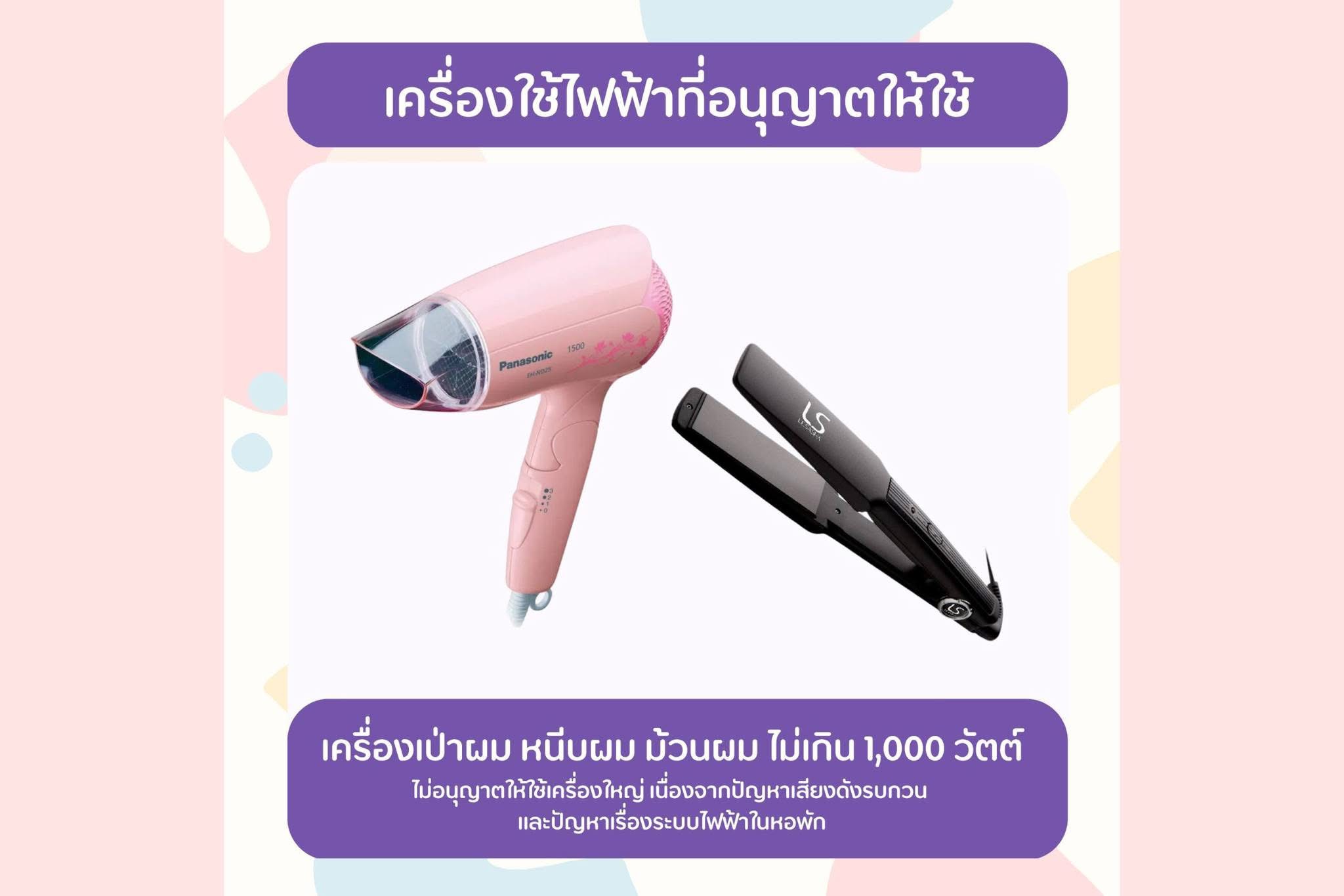 • โปรดตรวจสอบกฎระเบียบของหอพัก เกี่ยวกับสิ่งของต้องห้าม เช่น อุปกรณ์ไฟฟ้าบางประเภท