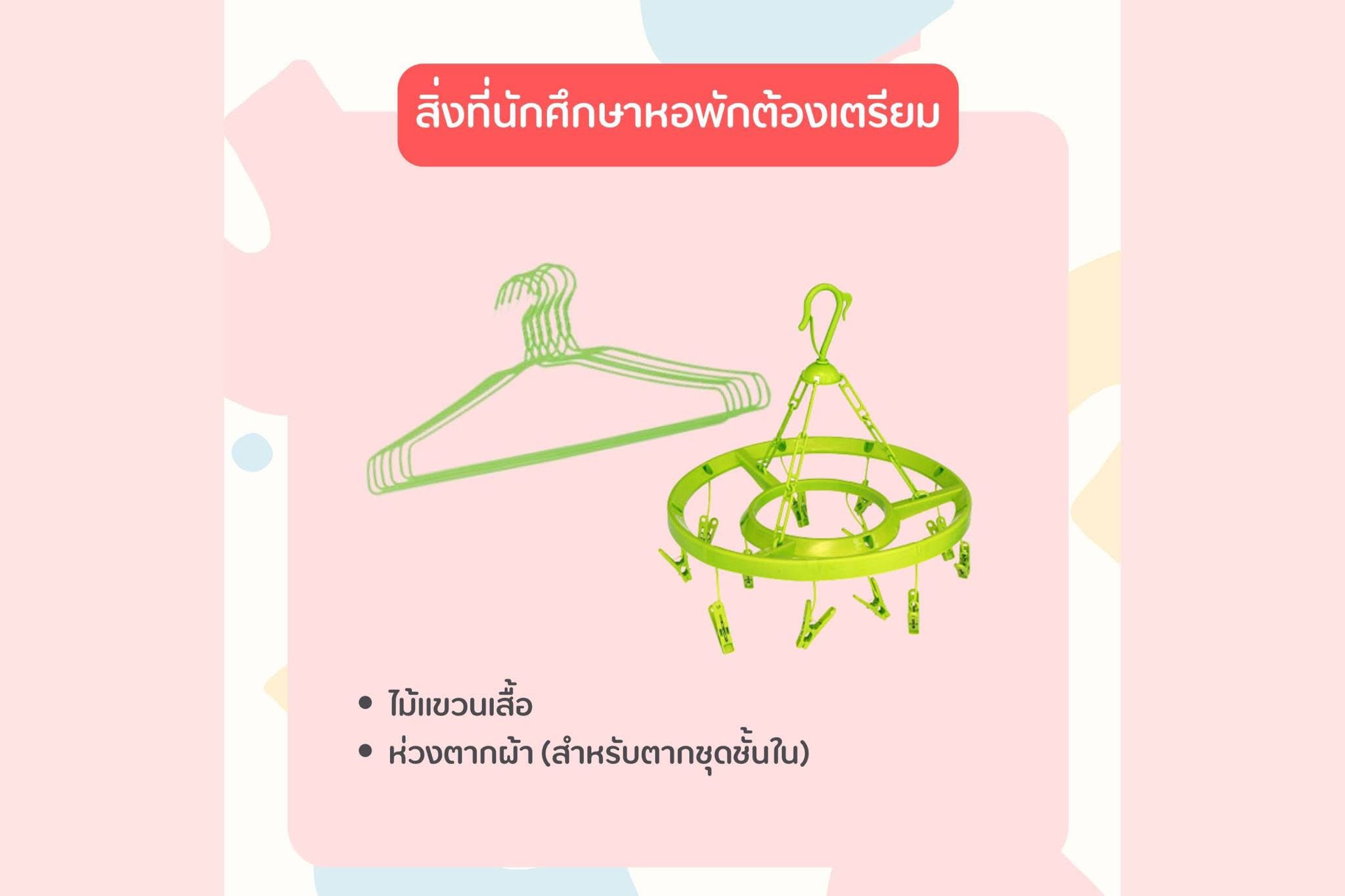 • เสื้อผ้าและของใช้ส่วนตัว เตรียมให้พอดีกับช่วงที่ยังไม่กลับบ้าน