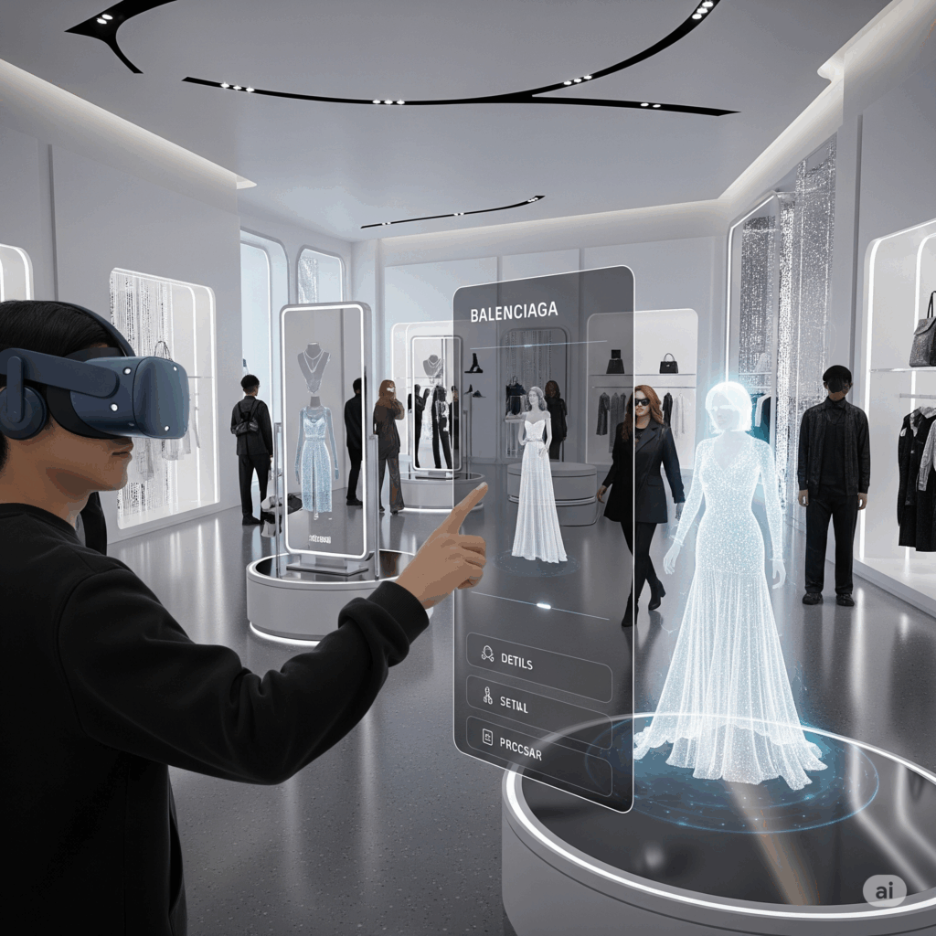 ร้านค้าแฟชั่นระดับไฮเอนด์: แบรนด์หรูอย่าง Dior หรือ Balenciaga สร้างสรรค์ร้านค้าเสมือนจริงที่จำลองบรรยากาศและดีไซน์ของร้านเรือธง (Flagship Store) ลูกค้าสามารถเดินเลือกชมคอลเลกชันล่าสุด หยิบสินค้าขึ้นมาดูรายละเอียดแบบ 360 องศา และช้อปปิ้งในสภาพแวดล้อมที่พิเศษสุดๆ