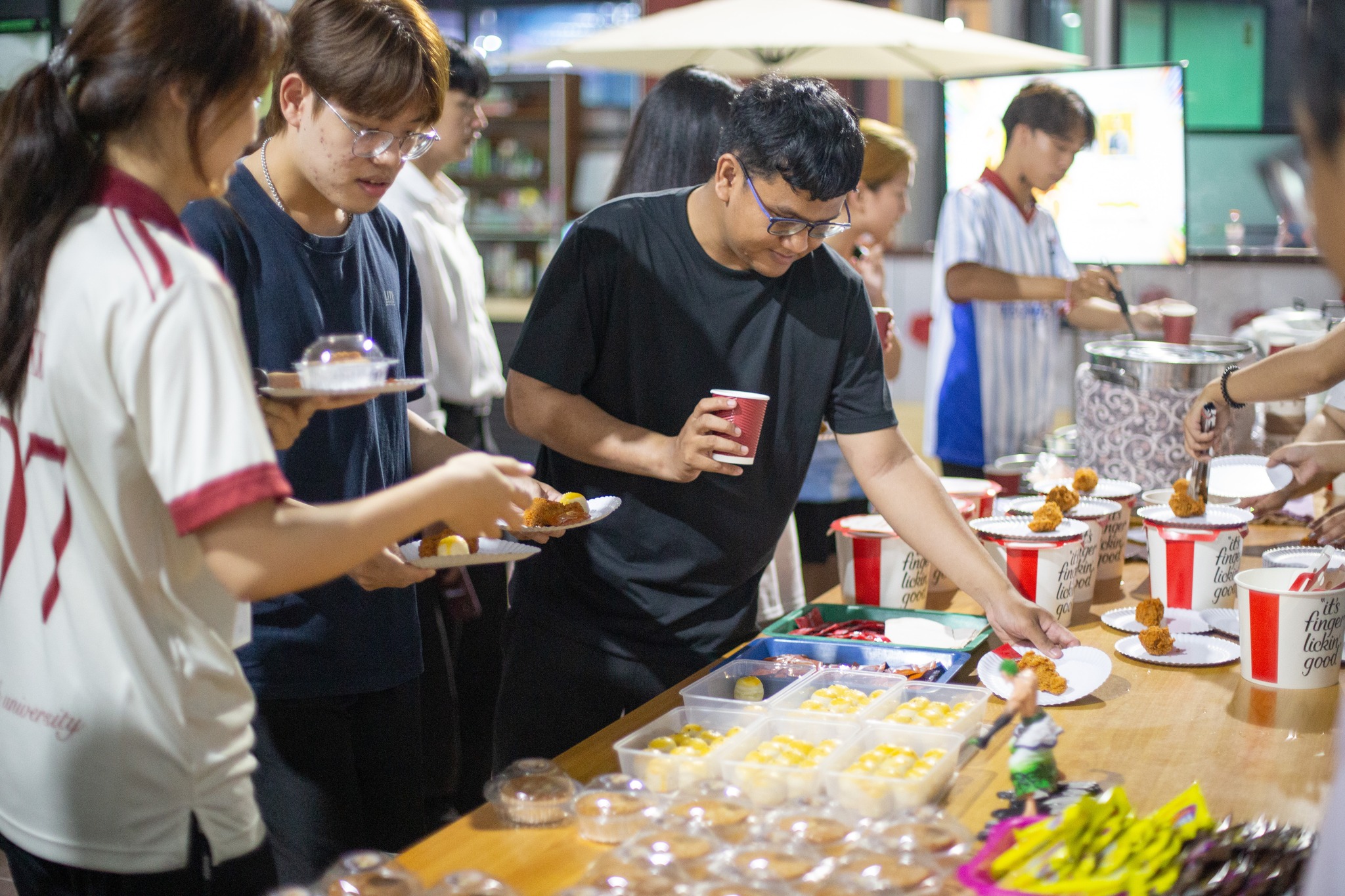 รูปแบบกิจกรรม จะมีการจัดเตรียม ขนม เครื่องดื่ม หรือของว่าง (เช่น ขนมปัง กาแฟ โอวัลติน หรือผลไม้) ไว้ให้บริการฟรีในพื้นที่ที่กำหนด นักศึกษาที่เข้าใช้พื้นที่ในช่วงเวลานั้นใช้บริการเพื่อให้อิ่มท้องได้เลย